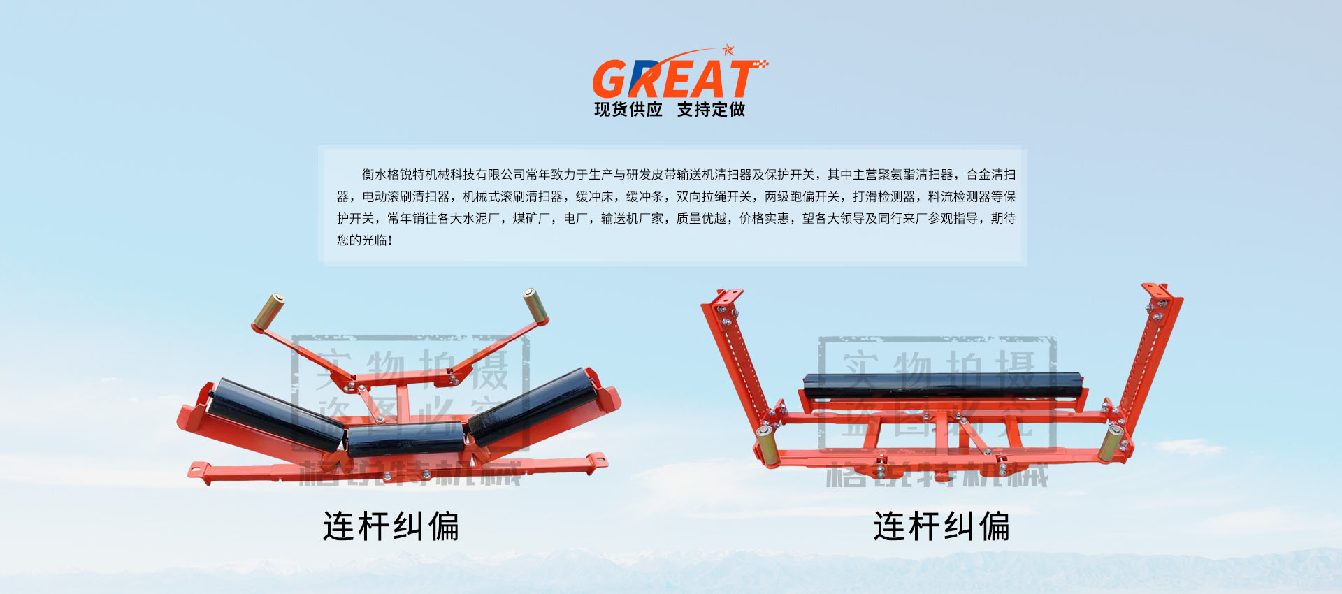 衡水格銳特機(jī)械科技有限公司常年致力于生產(chǎn)與研發(fā)皮帶輸送機(jī)清掃器及保護(hù)開(kāi)關(guān),其中主營(yíng)聚氨酯清掃器,合金清掃器,電動(dòng)滾刷清掃器,機(jī)械式滾刷清掃器,緩沖床,緩沖條,雙向拉繩開(kāi)關(guān),兩級(jí)跑偏開(kāi)關(guān),打滑檢測(cè)器,料流檢測(cè)器等保護(hù)開(kāi)關(guān),常年銷(xiāo)往各大水泥廠(chǎng),煤礦廠(chǎng),電廠(chǎng),輸送機(jī)廠(chǎng)家,質(zhì)量?jī)?yōu)越,價(jià)格實(shí)惠,望各大領(lǐng)導(dǎo)及同行來(lái)廠(chǎng)參觀(guān)指導(dǎo),期待您的光臨!?。?/p>